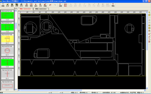 2、強大的零件圖形導入功能。可以批量導入DXF/DWG文件,對DXF/DWG文件的版本和繪圖方式沒有任何要求,軟件根據圖層分配自動識別切割圖形和劃線圖形,自動標示原圖中的重復線和不封閉輪廓,提示圖形轉換信息。