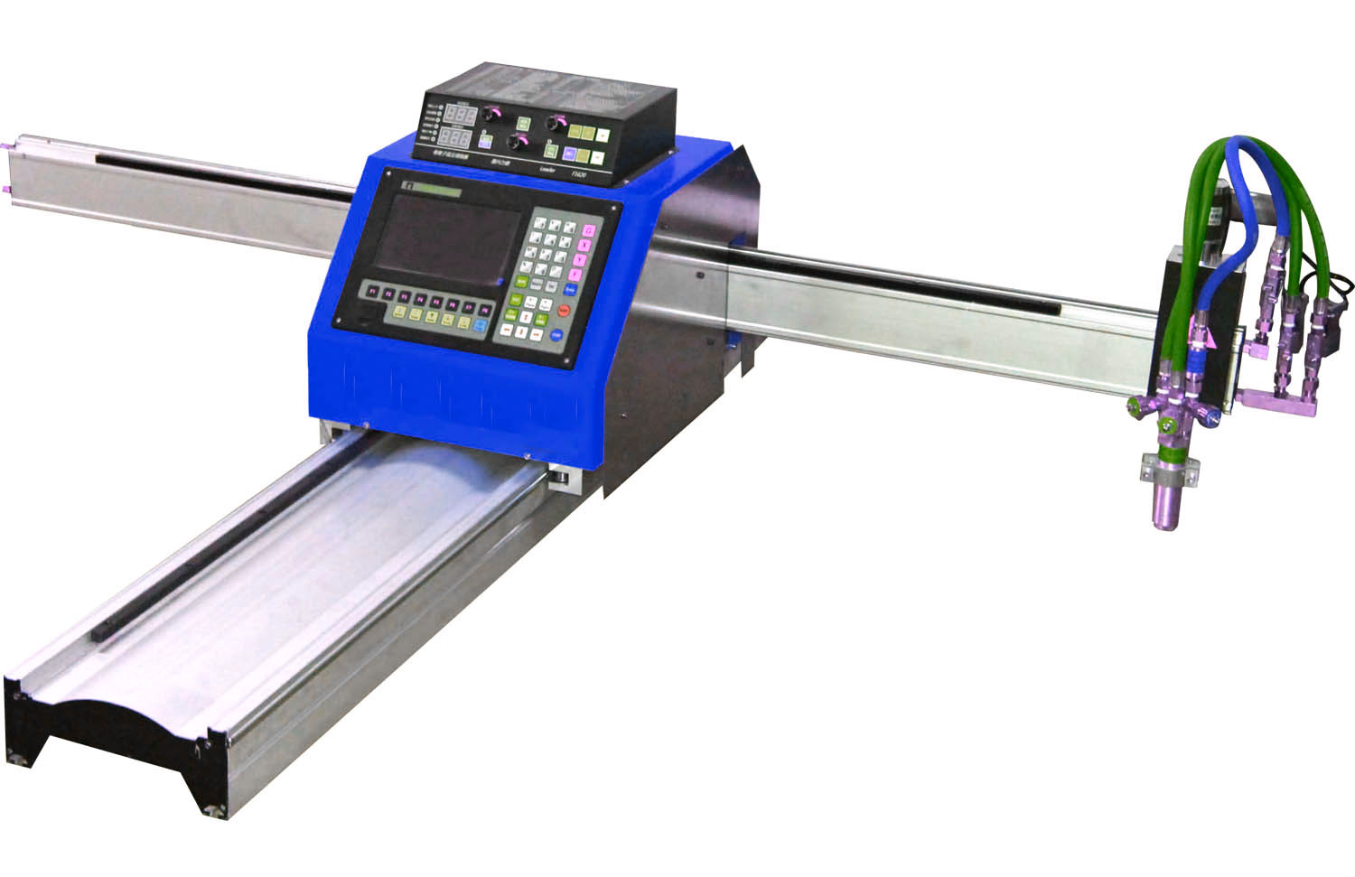 便攜式數控等離子切割機為懸臂式結構,可配備等離子切割,是一種高效率、節約能源的切割設備,重量輕,價格經濟的一種數控等離子切割機,是仿型切割機的更新換代產品。帶自動調高系統。為整體移動式,使用方式如同“小跑車”,可直接放置到待下料鋼板上,使用方便靈活;適用于各種厚度的碳鋼,不銹鋼及有色金屬板材的精密切割下料。可配置等離子微型自動調高系統。